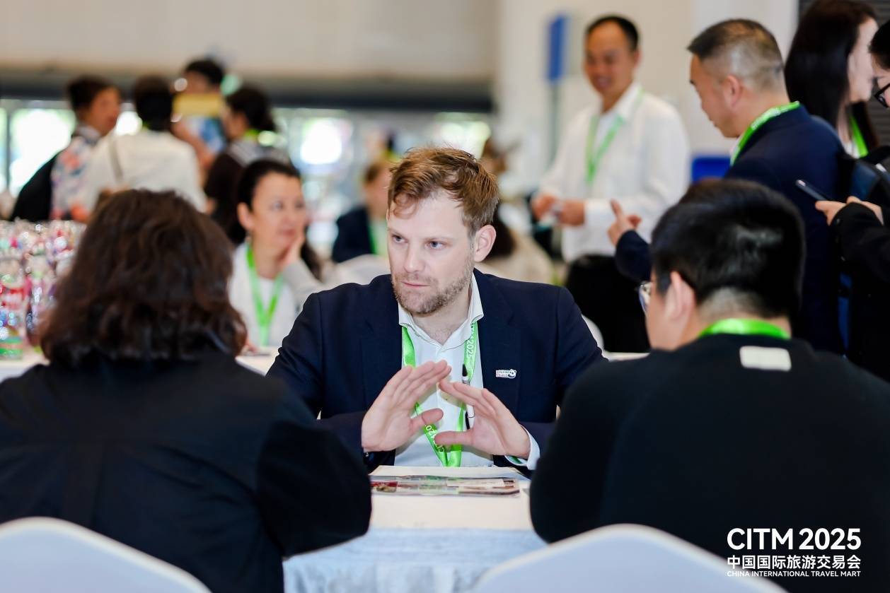 异邦旅行商在2025中国国际旅游往还会上和参展商洽谈。海南省旅文厅供图
