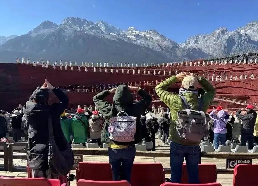 揣测他们在玉龙雪山旅游,佳偶皆背着包包,看起来很享受沿途出游。