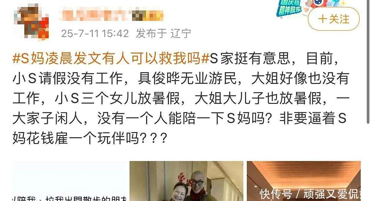而S妈这一波号称“年度母爱催泪弹”,三天两端酬酢媒体哭诉、托梦、赏格征东说念主陪散心,招工需求表比企业都专科“要样式、要会开车、作息要对路。”这哪是找奉陪,这是招私东说念主宰家兼心灵导师啊!洽商区一下子炸锅“这又是哪儿的扮演格调?聊着聊着就成了‘影后再服务’现场。”有东说念主揭S妈老底“男儿活着时欢脱得很,当今说多惨就多惨,这变脸速率比春晚后台的化妆师还快。”但老匹夫的和顺亦然有的,还有网友说“丧女之痛难以言表,你们别太尖刻。”但这种“博关注式悲痛”,在哪个年代不都会招来“真假争议”?一切悲情翻出来,都容易成“情谊交易”。