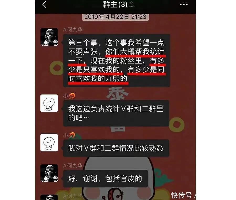 凭据领略,何九华那时在粉丝群内条目解决员统计“唯粉”(只心爱他)与“CP粉”(心爱尚何搭档)的比例,并越过珍摄“秦华超话”(其与秦霄贤的CP超话),指点“不要声张”。