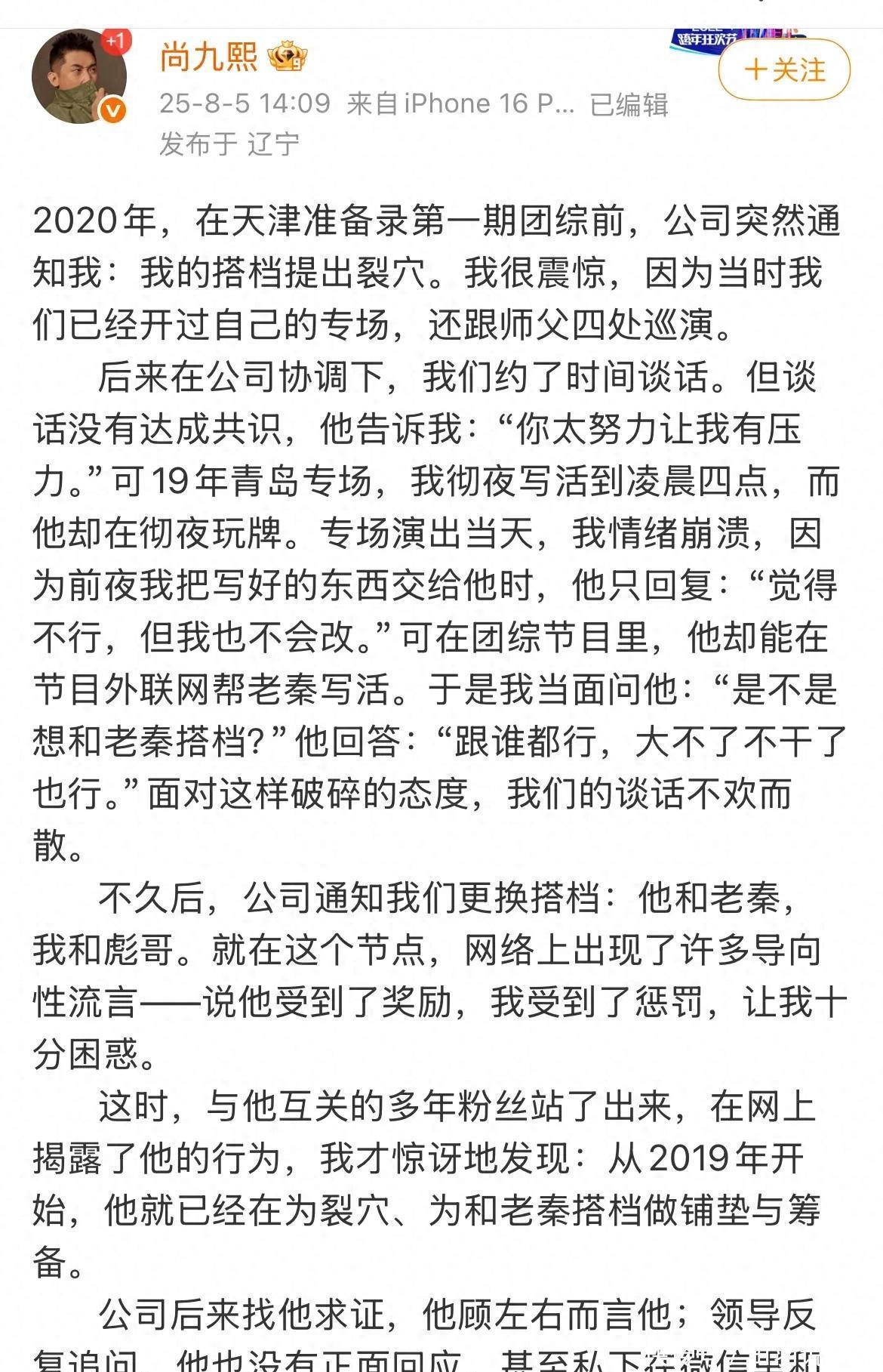 2025年8月5日,相声演员尚九熙一篇措辞千里痛的长文,将尘封六年的德云社“尚何裂穴”事件再次推至风口浪尖。这场被称为“德云社十大未解之谜”的搭档解体风云体育游戏app平台,其背后的悉数、叛变与资源争夺,终于被当事东谈主撕开一角。