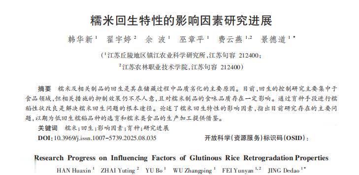 参考贵府:[1]韩华新,翟宇婷,余波,等.糯米复活脾气的影响因素探讨进展[J].当代农业科技开yun体育网,2025,(08):136-140.